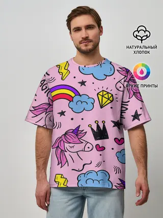 Мужская футболка оверсайз / Единороги
