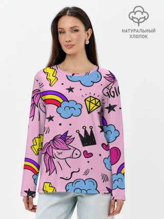 Лонгслив женский. Хлопок / Единороги
