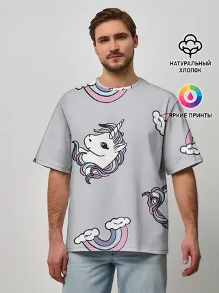 Мужская футболка оверсайз / Радужный единорог