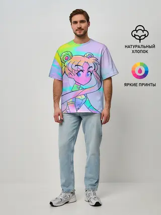 Мужская футболка оверсайз / ЦВЕТНАЯ МУН