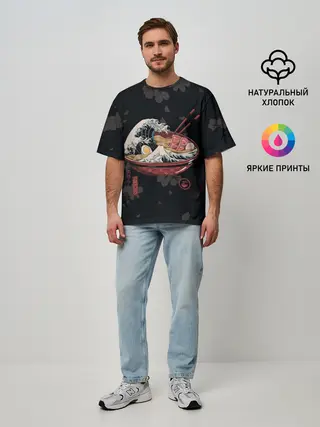 Мужская футболка оверсайз / Сакура и рамен