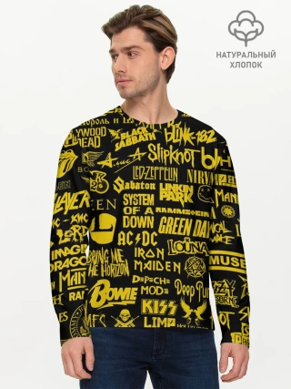Мужской лонгслив базовый / Логотипы рок групп GOLD