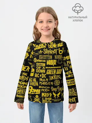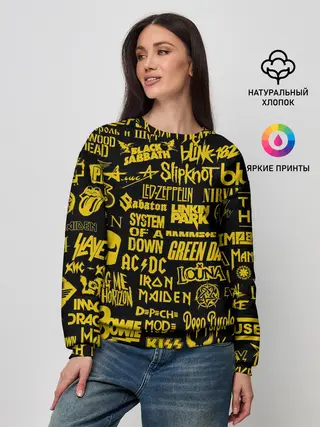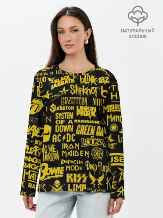 Лонгслив женский. Хлопок / Логотипы рок групп GOLD
