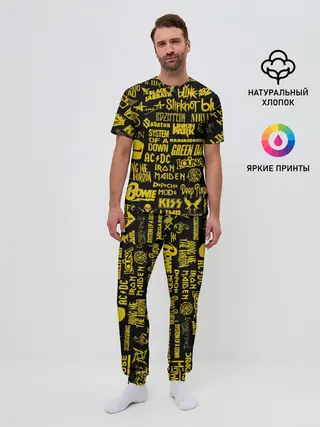Мужская пижама с брюками / Логотипы рок групп GOLD