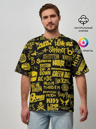 Мужская футболка оверсайз / Логотипы рок групп GOLD