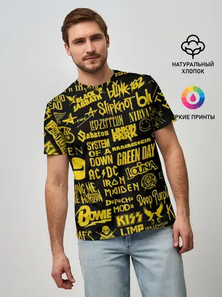 Мужская базовая футболка / Логотипы рок групп GOLD