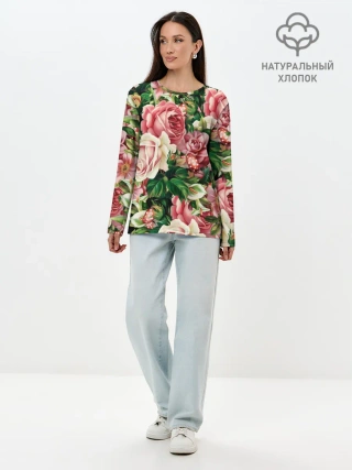 Лонгслив женский. Хлопок / ЦВЕТЫ / FLOWERS / 8 МАРТА