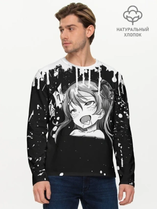 Мужской лонгслив базовый / Ахегао лицо чб
