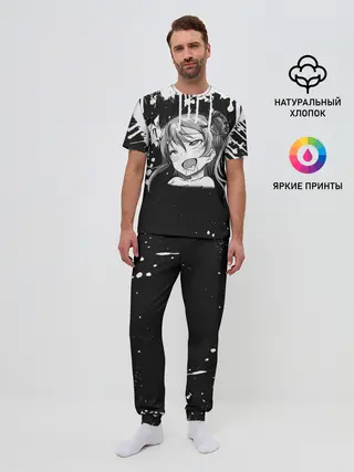 Мужская пижама с брюками / Ахегао лицо чб