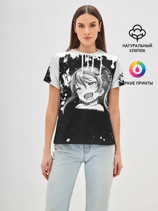 Женская базовая футболка / Ахегао лицо чб