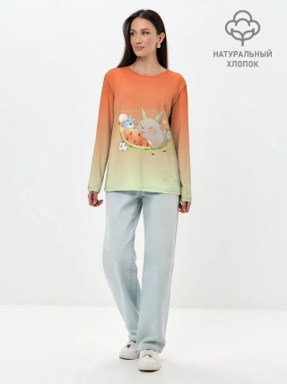 Лонгслив женский. Хлопок / Семейство Тоторо ест арбуз
