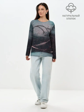 Лонгслив женский. Хлопок / Абстракция краска разводы кап