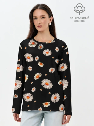 Лонгслив женский. Хлопок / Ромашки в ночи