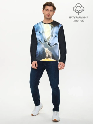 Мужской лонгслив базовый / ВОЛК В НОЧИ