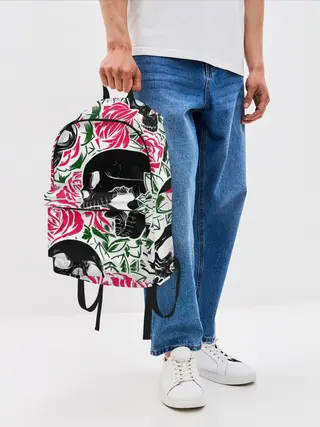 Рюкзак джинсовый / Череп, розы, цветы, зубы