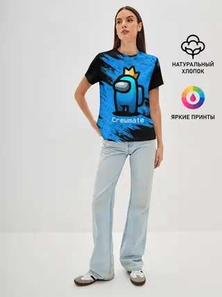 Женская футболка оверсайз / AMONG US - Синий в Короне