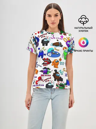 Женская базовая футболка / AMONG US STICKERBOMBING