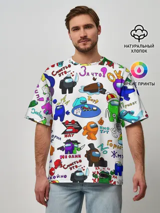 Мужская футболка оверсайз / AMONG US STICKERBOMBING