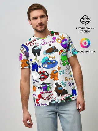 Мужская базовая футболка / AMONG US STICKERBOMBING