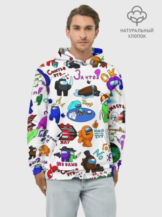 Худи мужской база хлопок / AMONG US STICKERBOMBING