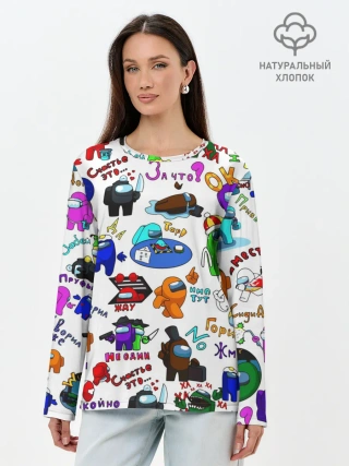 Лонгслив женский. Хлопок / AMONG US STICKERBOMBING