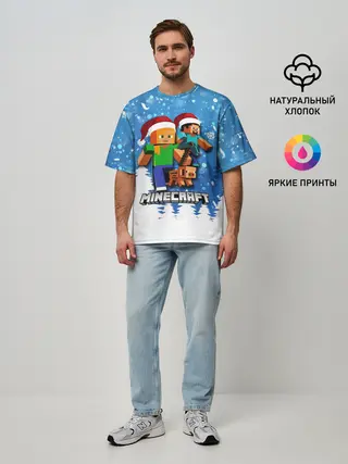 Мужская футболка оверсайз / Новогодний Манкрафт