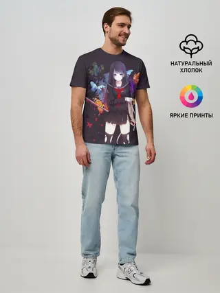 Рюкзак джинсовый / Kimetsu no Yaiba на черном