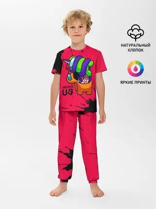 Детская пижама с брюками / AMONG US - ORANGE & GREEN