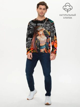 Мужской лонгслив базовый / Anime Girl with Graffiti