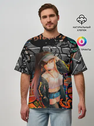 Мужская футболка оверсайз / Anime Girl with Graffiti