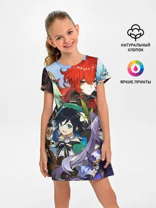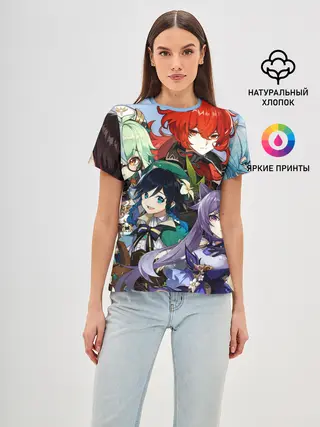 Женская футболка оверсайз / Персонажи Genshin Impact