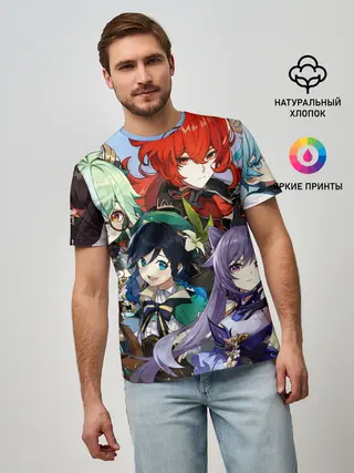 Мужская футболка оверсайз / Персонажи Genshin Impact