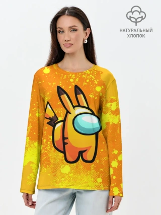 Лонгслив женский. Хлопок / AMONG US - Pikachu