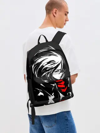 Рюкзак джинсовый / Черно-белая Микаса Аккерман