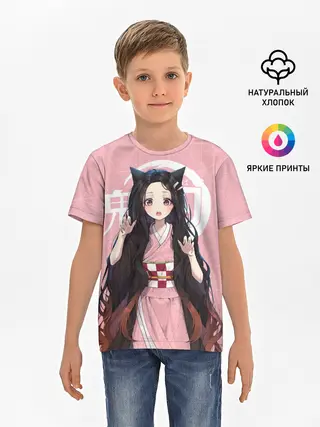 Детская базовая футболка / Незуко розовый