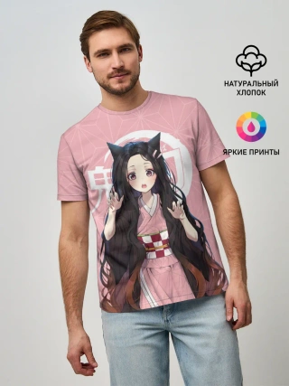 Мужская базовая футболка / Незуко розовый