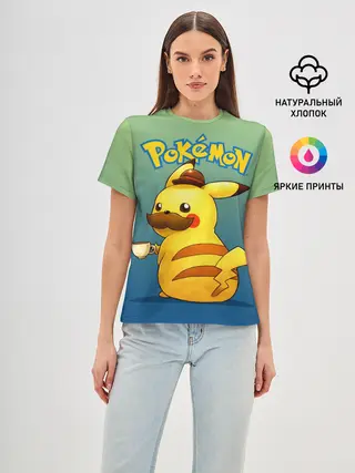 Женская футболка оверсайз / Детектив Пикачу покемон