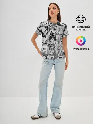 Женская базовая футболка / такое разное АХЕГАО. монохром