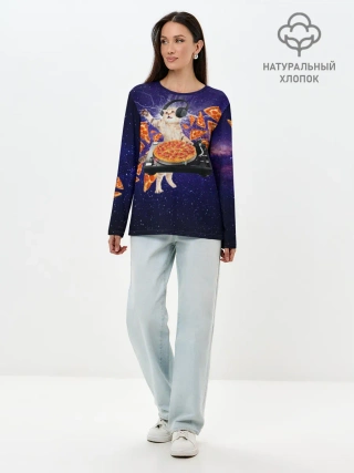 Лонгслив женский. Хлопок / Пицца - Кот
