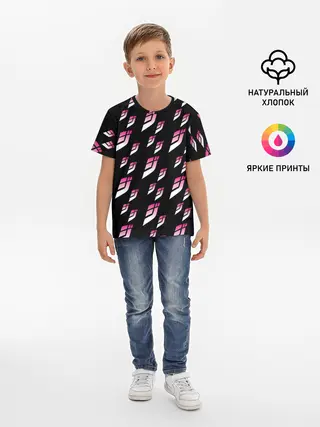 Детская базовая футболка / Джоджо паттерн розовые лого
