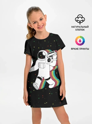 Женская футболка оверсайз / Космонавт с магнитофоном