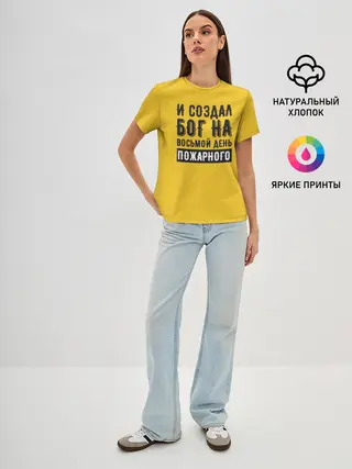 Женская базовая футболка / Создал Бог пожарного