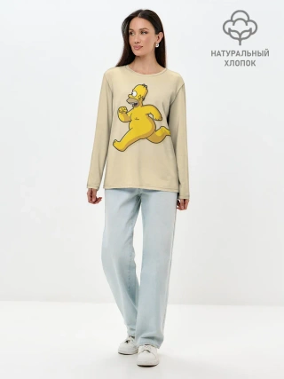Лонгслив женский. Хлопок / Гомер на Пробежке