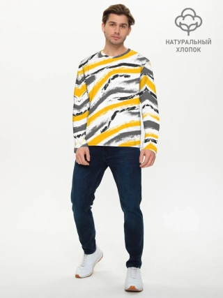 Мужской лонгслив базовый / Серый-желтый