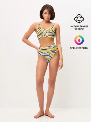 Женские топ и трусы / Серый-желтый