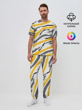 Мужская пижама с брюками / Серый-желтый