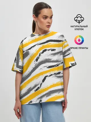 Женская футболка оверсайз / Серый-желтый