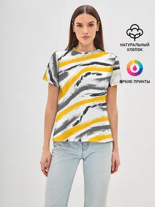 Женская базовая футболка / Серый-желтый