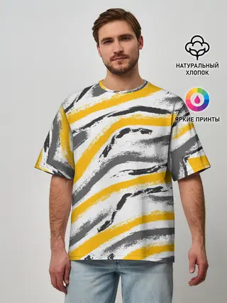 Мужская футболка оверсайз / Серый-желтый