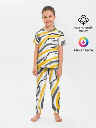 Детская пижама с брюками / Серый-желтый